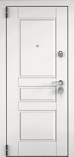Белая металлическая дверь входная для дома №33 выделяется своим свежим и современным обликом. Универсальный белый цвет делает её уместной как в частном коттедже, так и в квартире или офисе, визуально добавляя простора и подчеркивая аккуратность фасада или интерьера. Конструкция двери основана на стальном листе толщиной 2 мм и усилена профильными трубами, что гарантирует надежность и устойчивость к нагрузкам. Важная особенность модели — наличие терморазрыва в полотне и коробке: благодаря этому дверь не промерзает в зимний период, исключается конденсат и сохраняется комфорт внутри помещения. Внешняя и внутренняя отделка выполнена из МДФ с ПВХ-покрытием, которое защищает поверхность от влаги и механических повреждений, сохраняя первозданный вид надолго. Два контура уплотнителя обеспечивают герметичность и дополнительную защиту от сквозняков. Эта дверь удачно сочетает эстетику и практичность, создавая надежный вход в любое жилище. Белая металлическая дверь входная для дома №33 от производителя: быстрое изготовление и монтаж в Лосино - Петровском, индивидуальные размеры, широкий выбор материалов и фурнитуры, официальная гарантия до 10 лет.