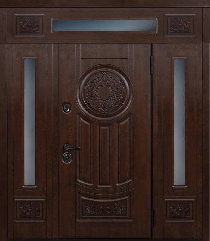 Эта нестандартная парадная дверь с фрамугой №6 — отличный выбор для тех, кто ценит элегантность и долговечность. Внешняя и внутренняя отделка из МДФ придает дверям стильный и современный вид, а также защиту от механических повреждений. МДФ устойчива к царапинам и вмятинам, что делает дверь идеальной для долгосрочной эксплуатации. Каркас из профильной трубы 50х25 мм и лист металла толщиной 2 мм обеспечивают прочность и надежность, а ребра жесткости из профильных труб гарантируют дополнительную устойчивость. В двери установлены блокираторы, два контура уплотнителей из резины, что повышает звуко- и теплоизоляцию. Замки от известных производителей, таких как Просам и Мосрентген, обеспечат надежную защиту. Возможность комбинировать отделку, добавлять зеркало, стеклопакет или кованые элементы позволяет легко адаптировать дверь под любые предпочтения. Нестандартная парадная дверь с фрамугой №6 от производителя: быстрое изготовление и монтаж в Лосино - Петровском, индивидуальные размеры, широкий выбор материалов и фурнитуры, официальная гарантия до 10 лет.