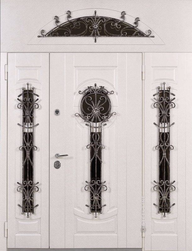 Входная дверь с кованой ручкой и фрамугой №6 представляет собой элегантное и надежное решение для тех, кто ценит не только безопасность, но и стиль. Эта модель идеально подойдет для оформления парадных входов в дома и офисы. Внешняя отделка из плиты МДФ придает двери современный и чистый вид, который сохраняется долго благодаря стойкости к внешним воздействиям. Благодаря профильной трубе с толщиной металла 2 мм и ребрам жесткости, конструкция двери гарантирует прочность и долговечность. Дополнительный элемент — кованая ручка, которая добавляет изысканности и подчеркивает высокий класс изделия. Стандартная комплектация не включает шумо- и теплоизоляцию, однако она может быть установлена по желанию. Резиновый уплотнитель с двумя контурами обеспечит хорошую герметичность, защищая от ветра и пыли. Подходит для установки как в частных домах, так и в офисах, привлекая внимание своим необычным и стильным дизайном. Входная дверь с кованой ручкой и фрамугой №6 от производителя: быстрое изготовление и монтаж в Лосино - Петровском, индивидуальные размеры, широкий выбор материалов и фурнитуры, официальная гарантия до 10 лет.