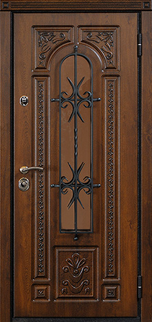 Входная дверь с ковкой и стеклом в частный дом №14 создана для тех, кто ценит практичность и эстетику в равной степени. Каркас из профильной трубы и стальной лист толщиной 2 мм отвечают за надежность и устойчивость, а декоративное остекление с коваными элементами делает вход в дом более светлым и выразительным. Отделка панелями МДФ с ПВХ-покрытием защищает поверхность от влаги, перепадов температуры и мелких повреждений, позволяя двери сохранять презентабельный вид долгие годы. Два контура уплотнения обеспечивают защиту от сквозняков, а при необходимости можно дополнить конструкцию дополнительной шумо- и теплоизоляцией. Входная дверь с ковкой и стеклом в частный дом №14 может изготавливаться в любых размерах и с любым направлением открывания, а также комплектоваться современными замками или дополнительными декоративными элементами, подчеркивающими индивидуальность фасада. Входная дверь с ковкой и стеклом в частный дом №14 от производителя: быстрое изготовление и монтаж в Лосино - Петровском, индивидуальные размеры, широкий выбор материалов и фурнитуры, официальная гарантия до 10 лет.