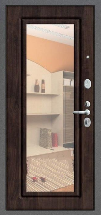 Каркас из профильной трубы и стальной лист толщиной 2 мм обеспечивают прочность конструкции и устойчивость к взлому, а два контура уплотнителей защищают помещение от сквозняков и уличного шума. Входная дверь в квартиру с зеркалом №10 выделяется сочетанием практичного молоткового напыления снаружи и аккуратной плиты МДФ внутри. Такое покрытие не боится механических повреждений и перепадов температуры, долго сохраняя первоначальный вид. Зеркало на внутренней стороне делает прихожую светлее и визуально просторнее, заменяя полноценное настенное. Дополнительные блокираторы и система ребер жёсткости усиливают надежность. Возможность изготовления в любых размерах позволяет адаптировать модель под особенности квартиры, офиса или частного дома, сохранив баланс между эстетикой и безопасностью. Входная дверь в квартиру с зеркалом №10 от производителя: быстрое изготовление и монтаж в Лосино - Петровском, индивидуальные размеры, широкий выбор материалов и фурнитуры, официальная гарантия до 10 лет.