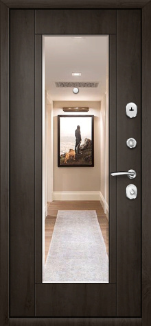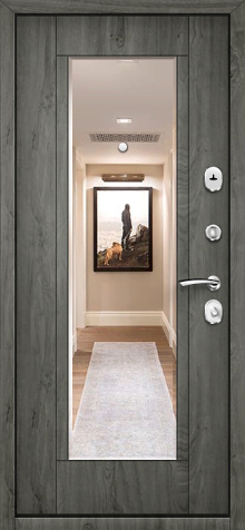 Для тех, кто ценит не только надёжность, но и практичность, металлическая входная дверь с зеркалом становится отличным решением. Она органично впишется как в частный дом, так и в квартиру или офис, позволяя сэкономить пространство и добавить функциональности интерьеру. В основе конструкции — прочный каркас из профильной трубы и стальной лист толщиной 2 мм, что обеспечивает серьёзную защиту от взлома и долговечность эксплуатации. Наружное покрытие выполнено методом порошкового термонапыления, устойчивого к механическим повреждениям и погодным условиям, а изнутри используется МДФ с ПВХ-плёнкой, сохраняющей привлекательный вид долгие годы. Железная дверь входная с зеркалом №75 дополнена двумя замками российского производства — сувальдным и цилиндровым, что повышает уровень безопасности. Возможность менять отделку, устанавливать умные замки или видеодомофон делает модель универсальной и адаптируемой под любые запросы. Железная дверь входная с зеркалом №75 от производителя: быстрое изготовление и монтаж в Лосино - Петровском, индивидуальные размеры, широкий выбор материалов и фурнитуры, официальная гарантия до 10 лет.