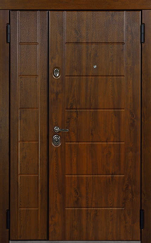 Эта двухстворчатая входная дверь с отделкой под темный орех №11 идеально сочетается с классическими и современными интерьерами. Накладки из МДФ, как снаружи, так и внутри, обеспечивают долговечность и устойчивость к механическим повреждениям, сохраняя привлекательный вид в течение долгого времени. Покрытие в цвете темного ореха придает двери элегантность и стиль, а также защищает от внешних воздействий. Двухстворчатая входная дверь с отделкой под темный орех №11 от производителя: быстрое изготовление и монтаж в Лосино - Петровском, индивидуальные размеры, широкий выбор материалов и фурнитуры, официальная гарантия до 10 лет.