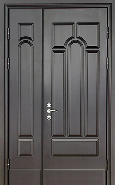 Металлическая двухстворчатая дверь для дома цвета графит №27 – это стильное и надежное решение для вашего жилья. Внешняя и внутренняя отделка выполнены из МДФ, что придает двери изысканный вид и увеличивает её стойкость к механическим повреждениям. Цвет графит придаёт двери современный и элегантный оттенок, который легко впишется в интерьер как частных домов, так и современных офисов. Металлическая двухстворчатая дверь для дома цвета графит №27 от производителя: быстрое изготовление и монтаж в Лосино - Петровском, индивидуальные размеры, широкий выбор материалов и фурнитуры, официальная гарантия до 10 лет.