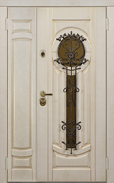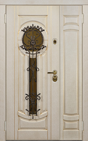 Двухстворчатая парадная дверь с ковкой и стеклом белая №30 — это сочетание красоты и надёжности. Конструкция из профильной трубы 50х25 мм и металлического листа толщиной 2 мм обеспечивает долговечность и стойкость к внешним воздействиям. Элементы ковки придают двери изысканный вид, а стеклопакет позволяет создать атмосферу лёгкости и прозрачности. Внешняя и внутренняя отделка выполнены из плиты МДФ, что делает дверь не только привлекательной, но и устойчивой к механическим повреждениям. Для дополнительной герметичности используются уплотнители с двумя контурами, а блокираторы обеспечат безопасность. Вариативность размеров и возможность добавления дополнительных опций, таких как шумо- и теплоизоляция, делают эту модель универсальной для установки в любом интерьере. Двухстворчатая парадная дверь с ковкой и стеклом белая №30 от производителя: быстрое изготовление и монтаж в Лосино - Петровском, индивидуальные размеры, широкий выбор материалов и фурнитуры, официальная гарантия до 10 лет.
