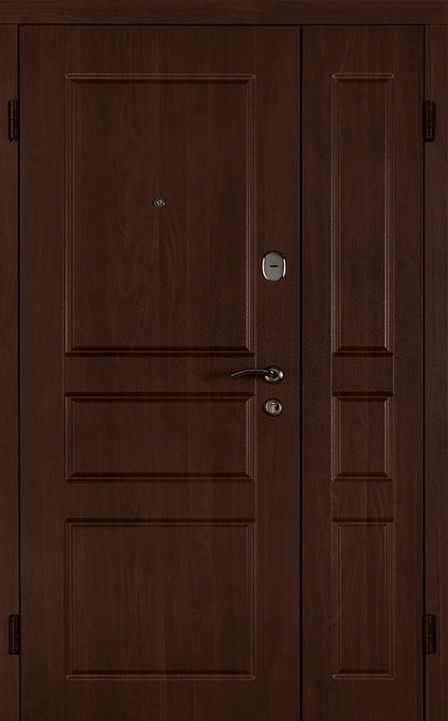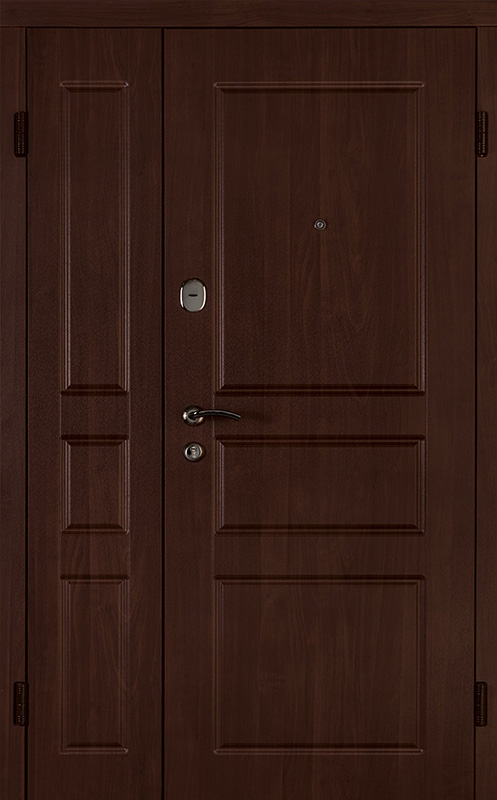 Коричневая входная полуторная дверь с филенчатой створкой №4 – это надежное и стильное решение для вашего дома или офиса. Внешняя и внутренняя отделка из МДФ с ПВХ обеспечивает долговечность и устойчивость к повреждениям, сохраняя при этом элегантный внешний вид. Прочные материалы конструкции, такие как профильная труба 50х25 мм и лист металла толщиной 2 мм, гарантируют стабильность и безопасность. Ребра жесткости из профильных труб 40х25 мм усиливают дверное полотно, а уплотнение с двумя контурами надежно защищает от внешних факторов. Несмотря на отсутствие терморазрыва, в двери реализованы терморазрывы в коробке и полотне, что помогает улучшить теплоизоляцию. Возможность выбора дополнительных опций, таких как шумоизоляция, делает эту дверь универсальной для различных условий эксплуатации. Коричневая входная полуторная дверь с филенчатой створкой №4 от производителя: быстрое изготовление и монтаж в Лосино - Петровском, индивидуальные размеры, широкий выбор материалов и фурнитуры, официальная гарантия до 10 лет.