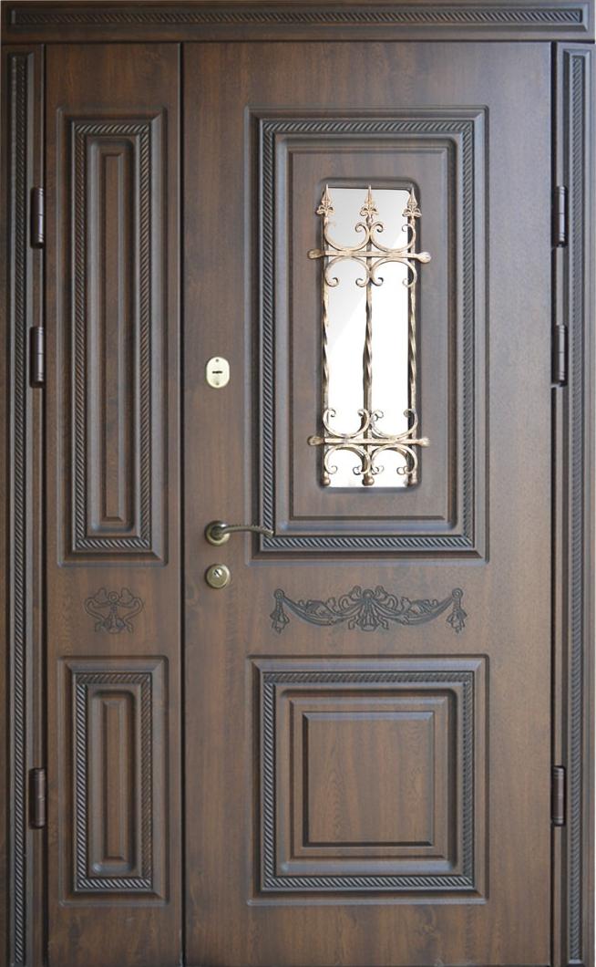 Утепленная дверь на усиленном коробе для загородного дома с колоннами №34