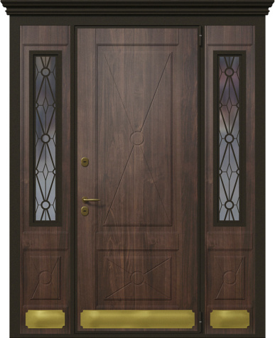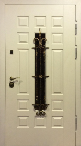 Дверь входная металлическая с стеклом и ковкой для дома №34