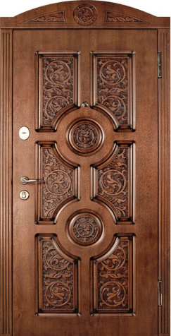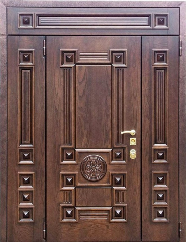 Входная металлическая дверь для частного дома со стеклом и ковкой №29